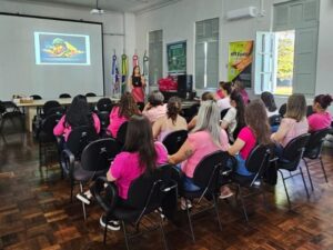 Na Estação Experimental de Caçador o encontro foi no dia 15 de outubro. Empregadas, bolsistas e esposas dos funcionários participaram da palestra “Cuidar de si é um ato de amor”, com a mastologista Dra Fabiola Morosini. O evento foi promovido pela Cipa- EECD