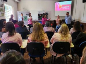 A palestrante enfatizou a importância da consulta com mastologista anualmente para mulheres a partir dos 40 anos. Ela alertou que o diagnóstico precoce aumenta a efetividade do tratamento.