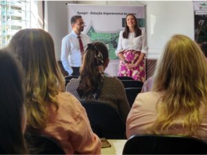 As Epagrianas assistiram a uma palestra ministrada pela radiooncologista Polyana Mendes Maia e pelo oncologista Leonardo Gil Santana. Ambos são médicos da Santé Cancer Center, clínica de Lages que já há alguns anos é parceira voluntária da Epagri nas ações do Outubro Rosa.