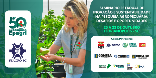 Florianópolis espera todos os pesquisadores da Epagri nesta segunda-feira, 20 de outubro, para o Seminário Estadual de Inovação e Sustentabilidade na Pesquisa Agropecuária: Desafios e Oportunidades.